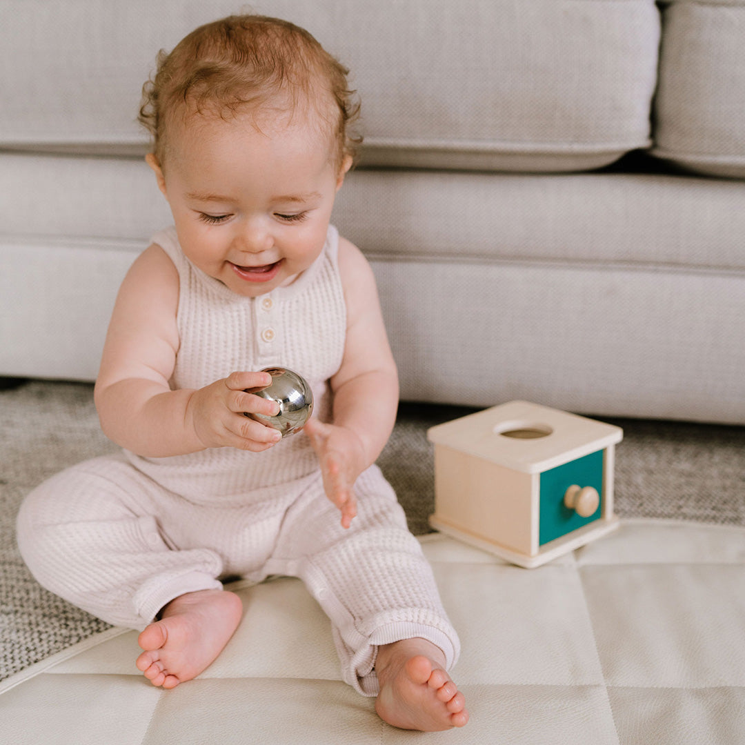 The box and ball drop is a simple and clever way to teach object permanence. This toy shows them that when they put the ball in the box, it’s still there – even if they can’t see it. This is also a great toy to support pincer grip development as they learn to open the drawer.