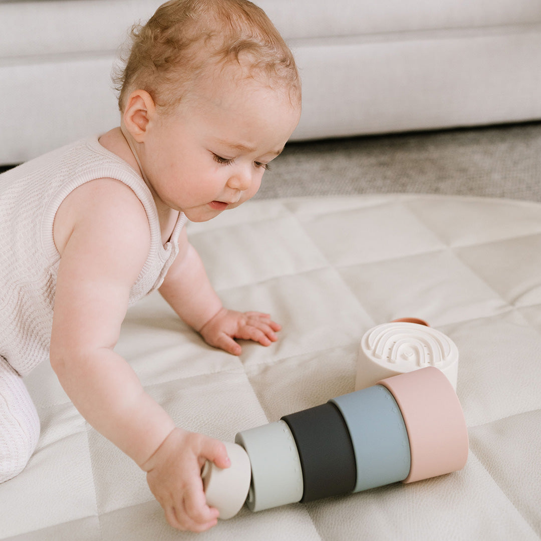 This set of seven soft silicone stacking cups is an absolute delight. Stacking toys help develop both the body and the brain, improving fine motor skills and building connections and concentration. Stacking cups are a very versatile toy, and your baby will love discovering new and exciting ways to play with them as they grow and learn.